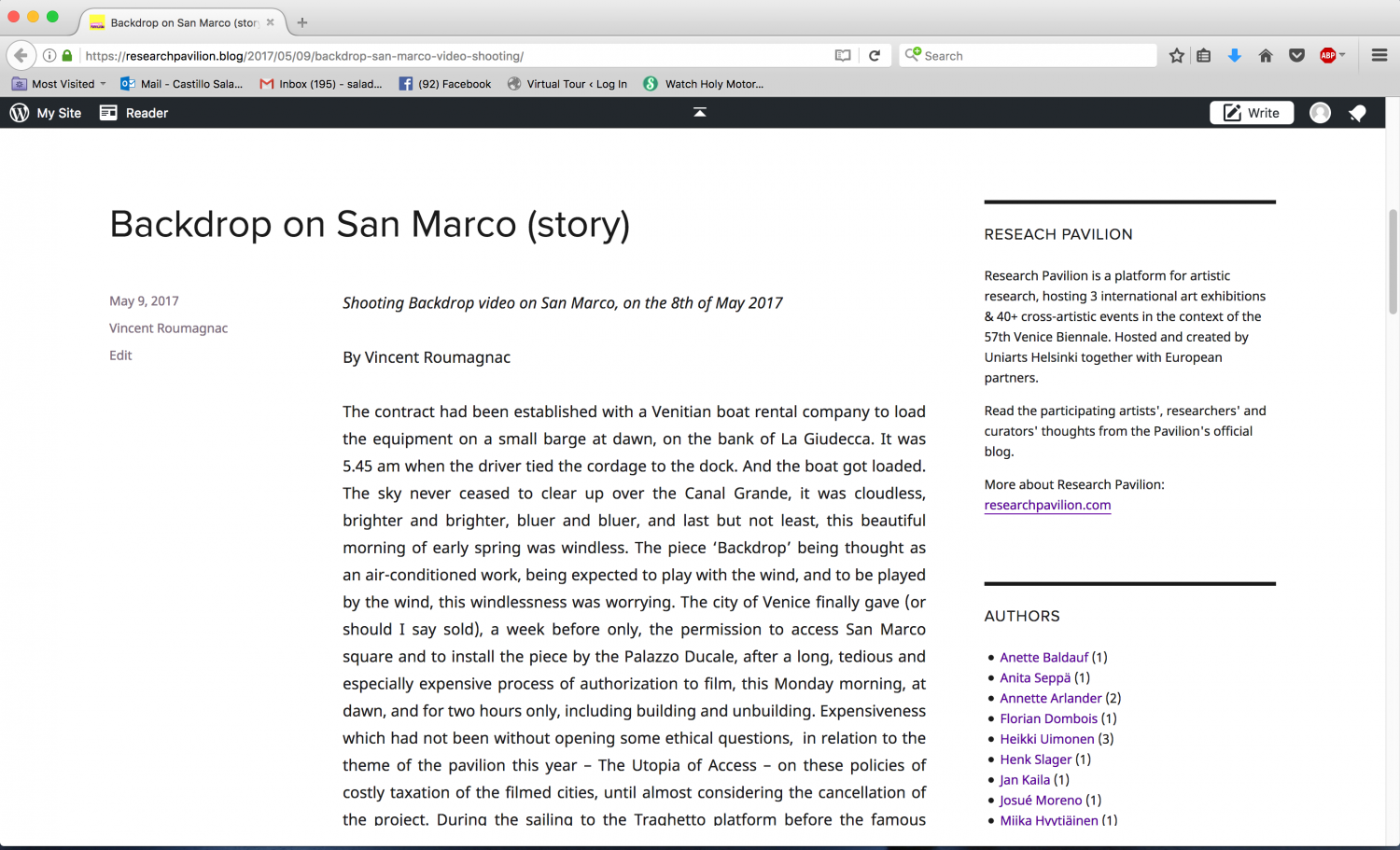 If the Backdrop had again been in Piazza San Marco, would the plastic have made its way completely around, like a swing pushed too hard? I decided to record only this agency, at least for once.